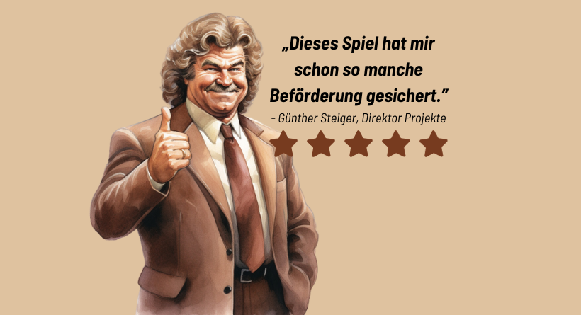 Aus dem Kartenspiel wird ein Brettspiel: Jeder im Spiel gewonnene Karrierepunkt bringt eure Spielfigur auf der Karriereleiter voran. Navigiert euch durch bunte Büro-Gemeinheiten und sabotiert Kolleginnen und Kollegen, die kurz vor der Beförderung stehen, mit zermürbenden Abstimmungsprozessen.